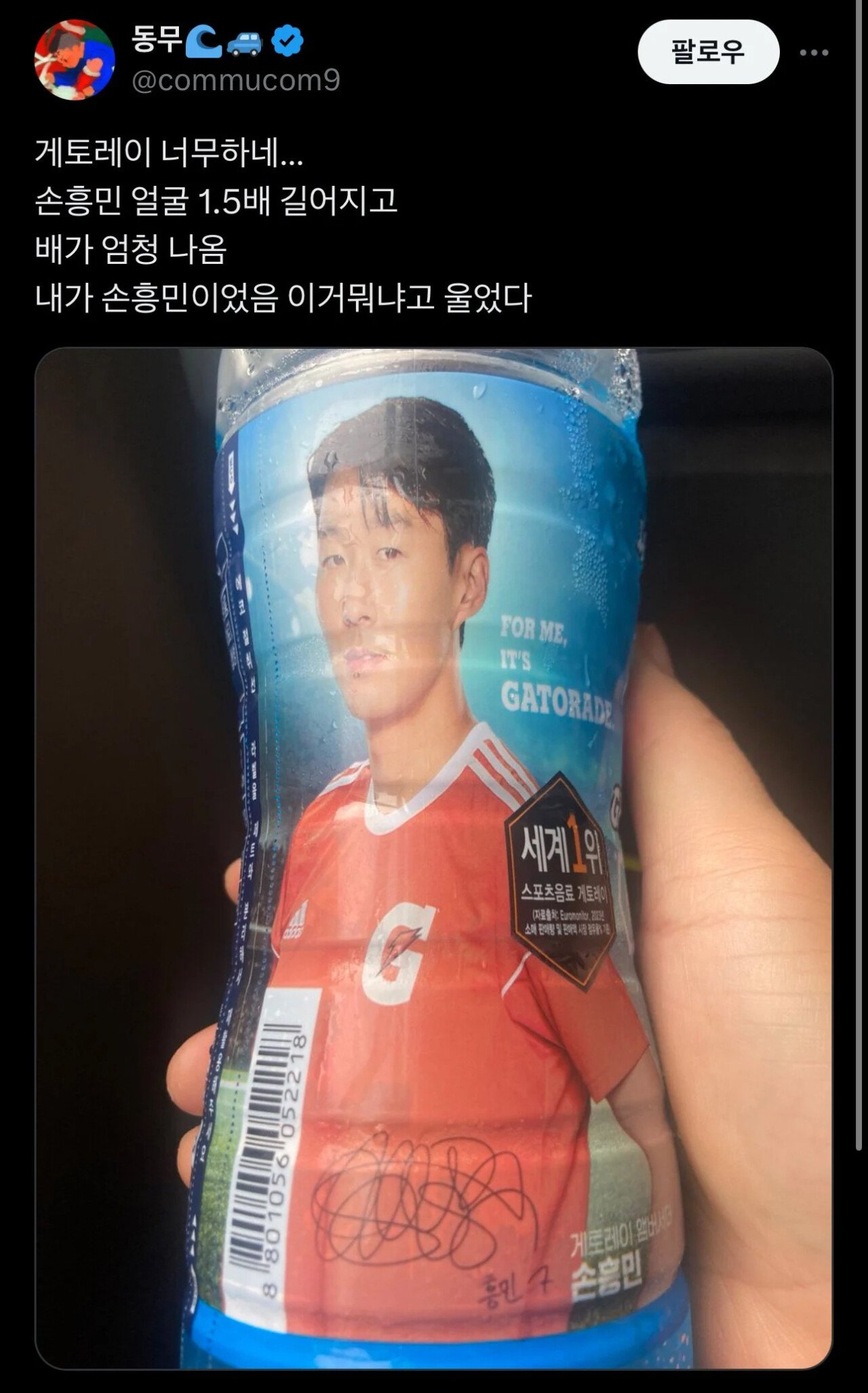 게토레이 너무하네… 손흥민 얼굴 1.5배 길어지고 배가 엄청 나옴