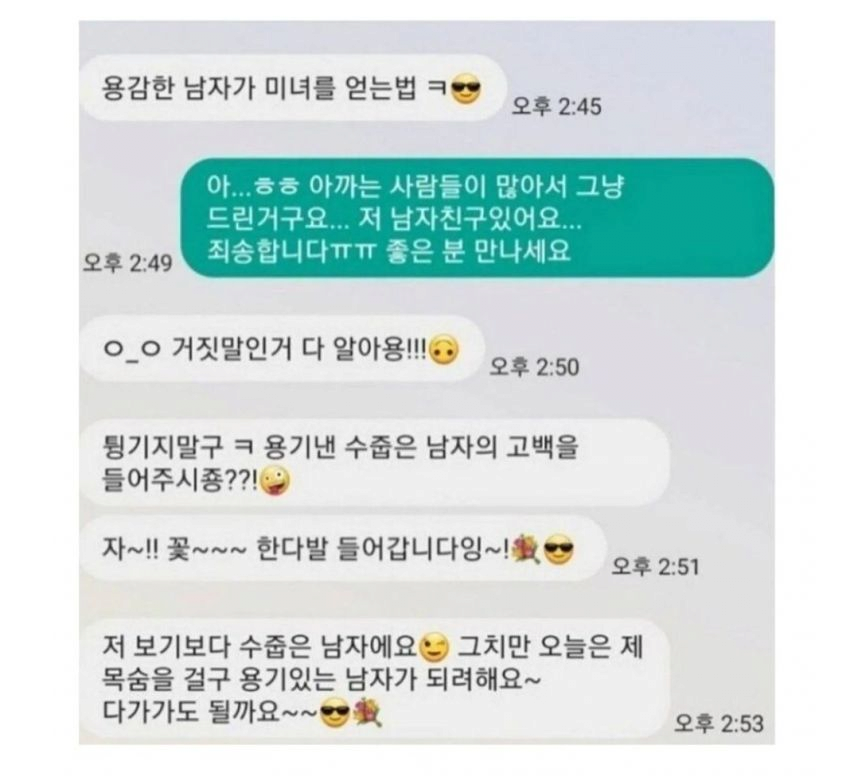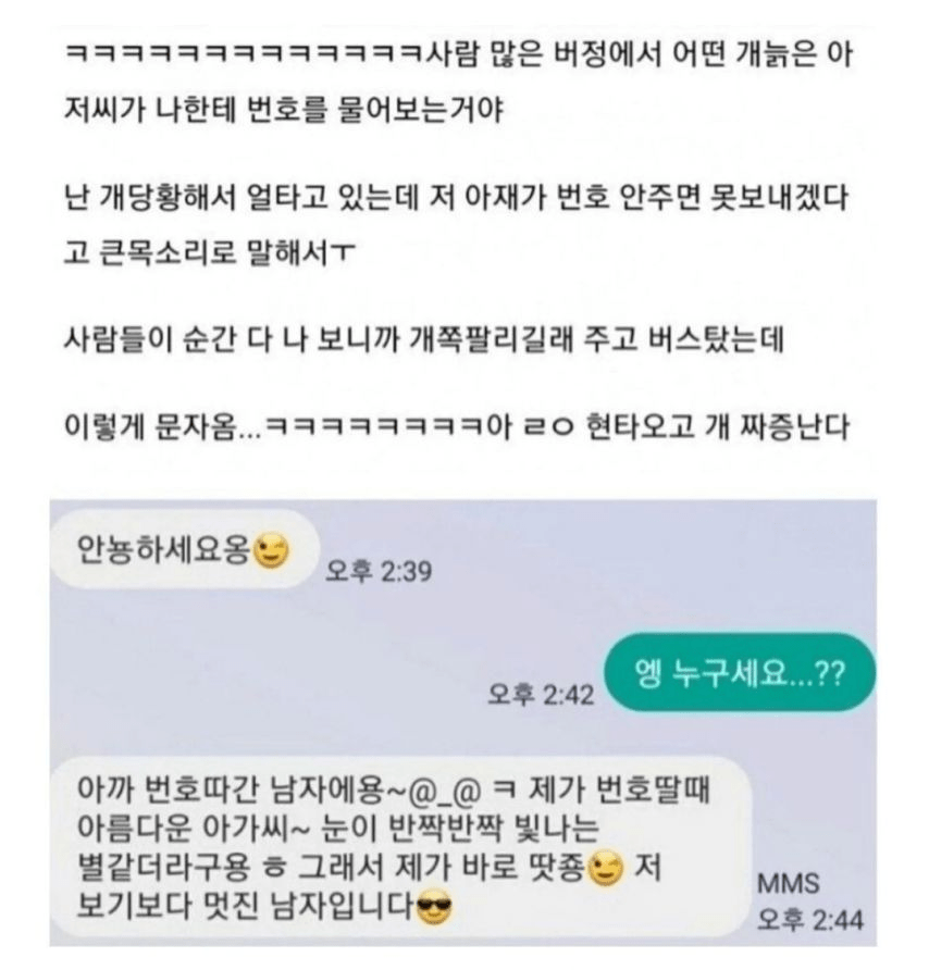 아저씨한테 번호 따이고 받은 문자