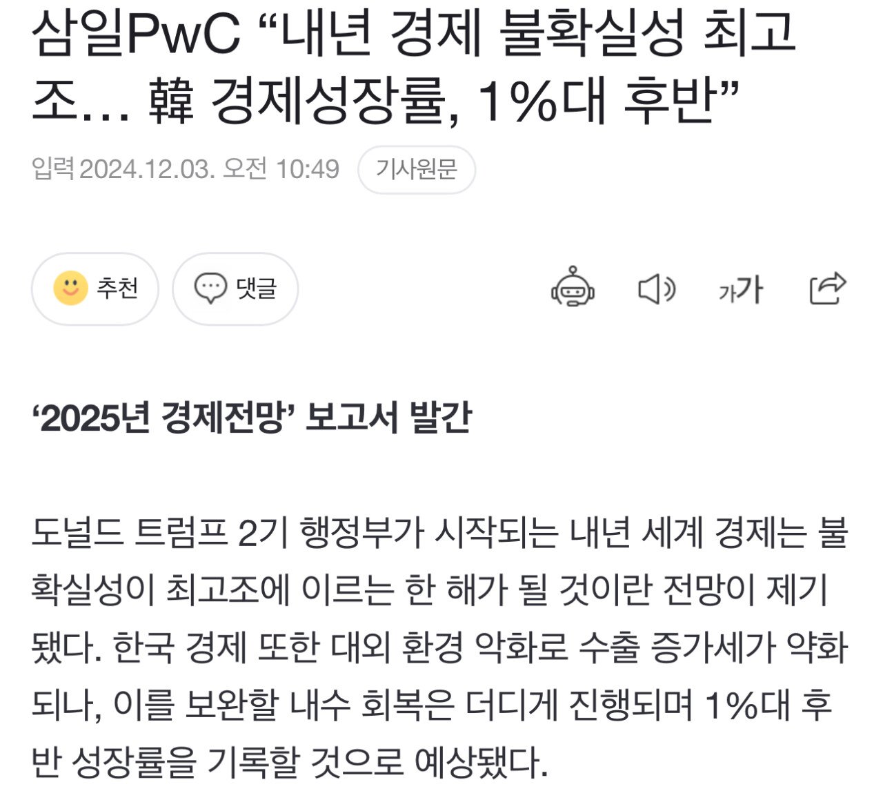삼일PwC “내년 경제 불확실성 최고조… 韓 경제성장률, 1%대 후반”