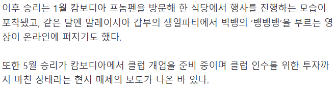 前 빅뱅 승리, 해외서 사업 중... "지드래곤보다 잘 벌어"