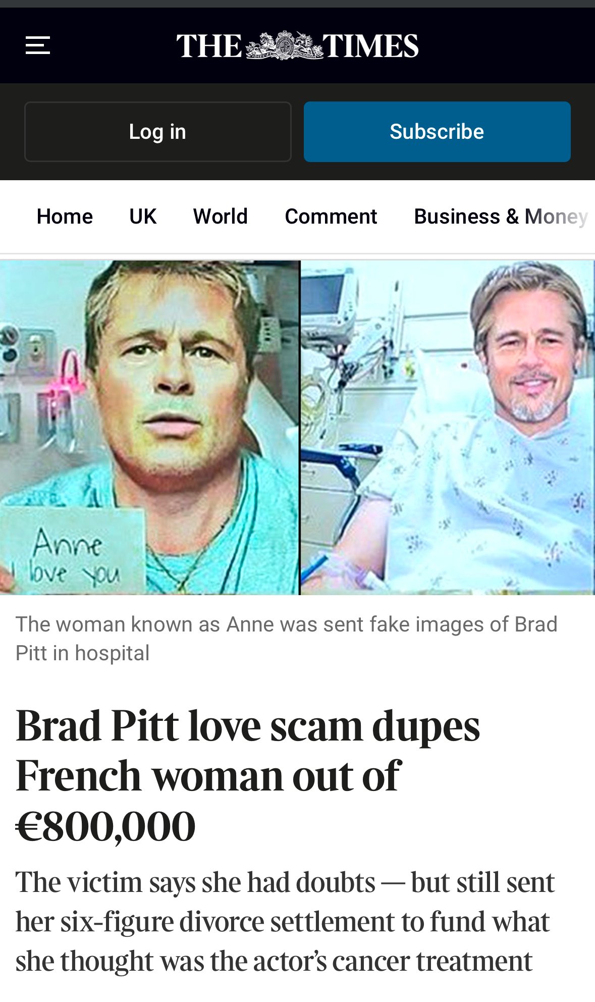 브래드 피트 AI에 속은 프랑스 여성