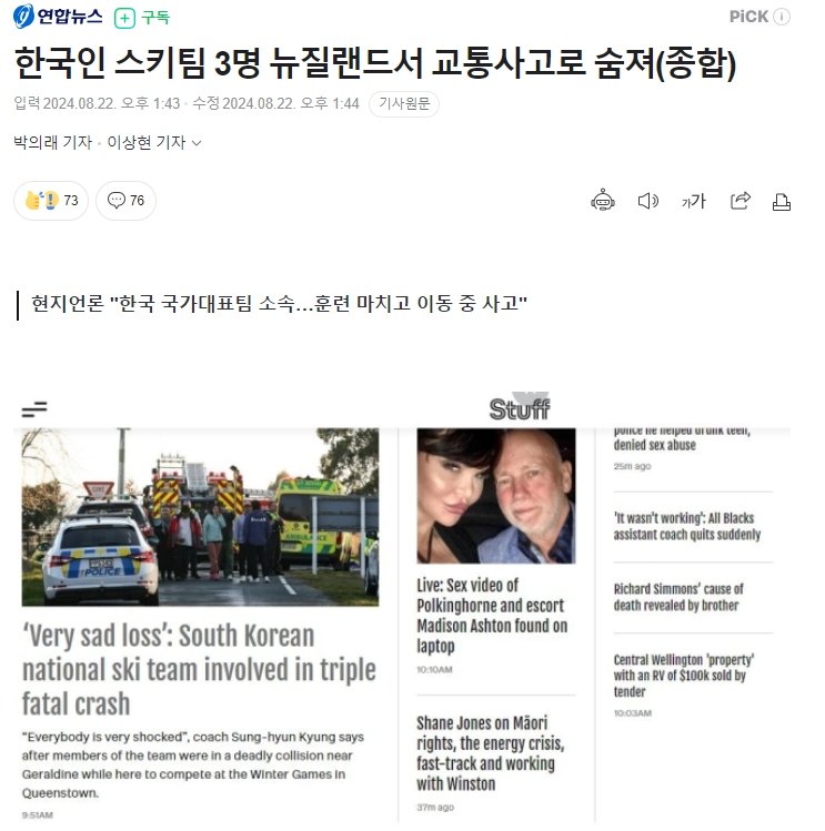한국인 스키팀 3명 뉴질랜드서 교통사고로 숨져