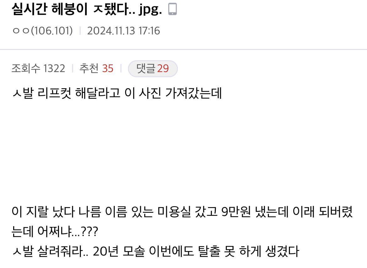 어제자 ㅈ됐다는 헤어갤러.jpg