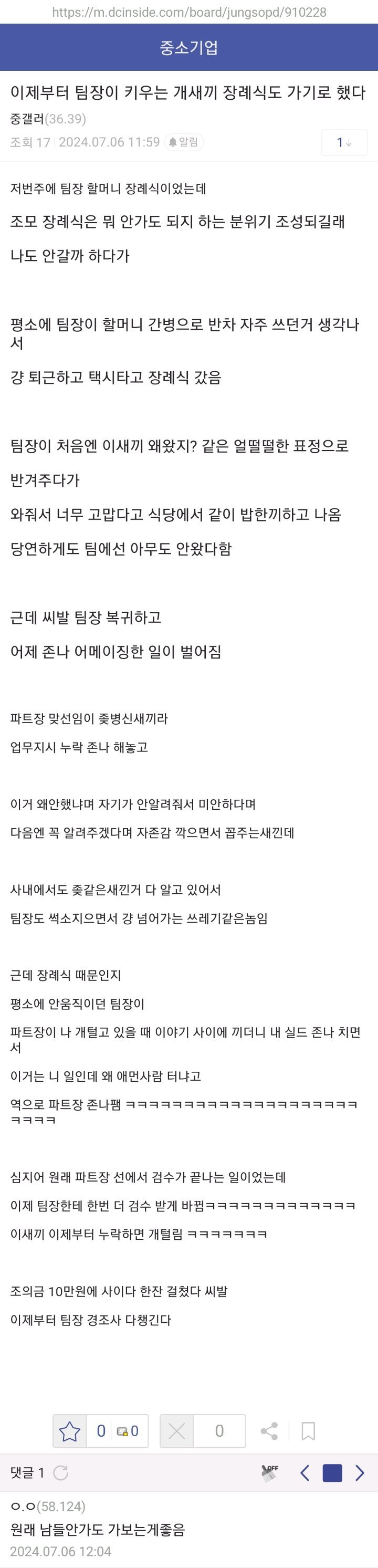 혼자서 팀장 조모상 갔다가 어메이징한 일을 겪은 디시인