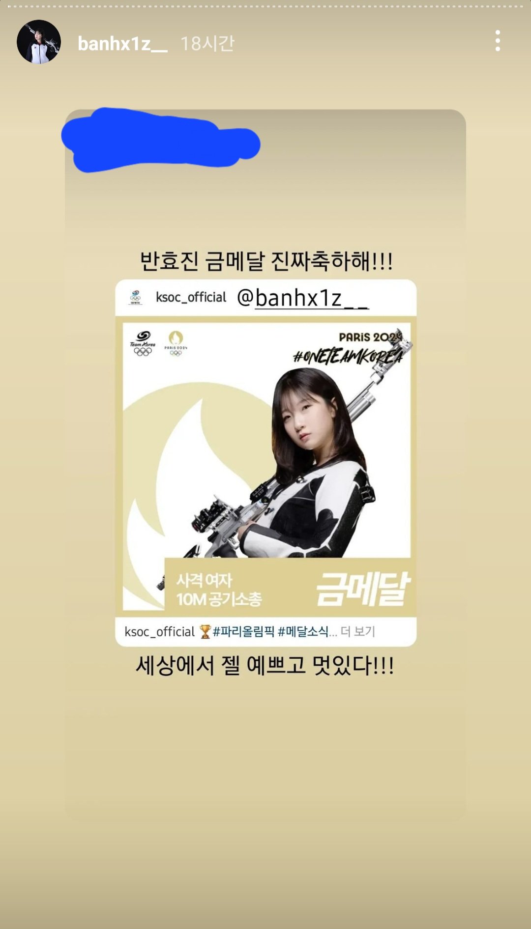 사격 금메달리스트 고등학생 반효진 인스타 근황