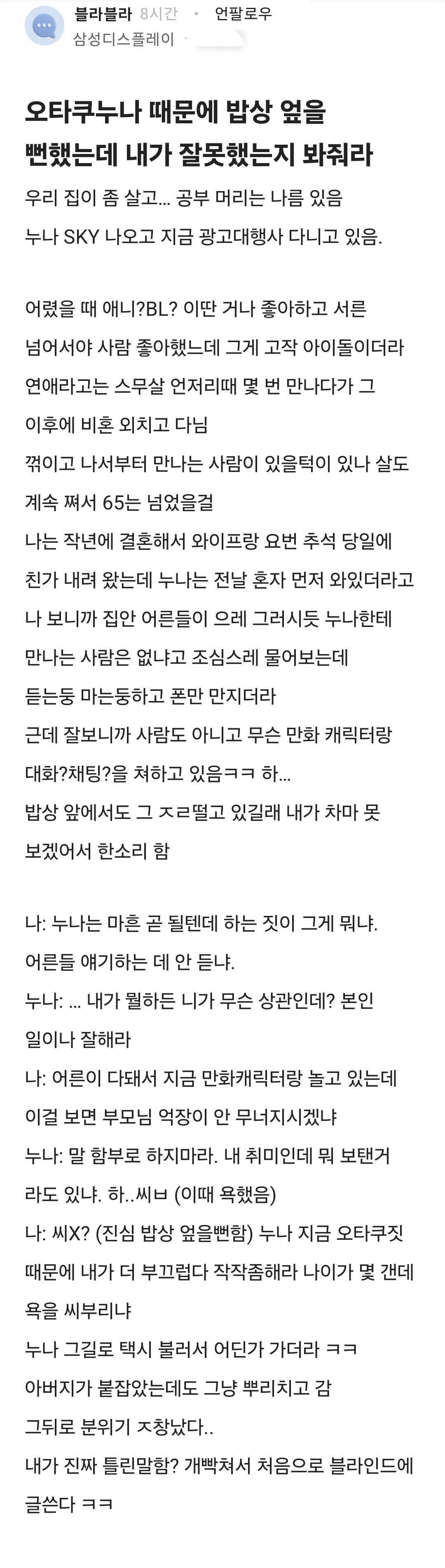 오타쿠 누나때문에 밥상 엎을뻔 했다는 블라인