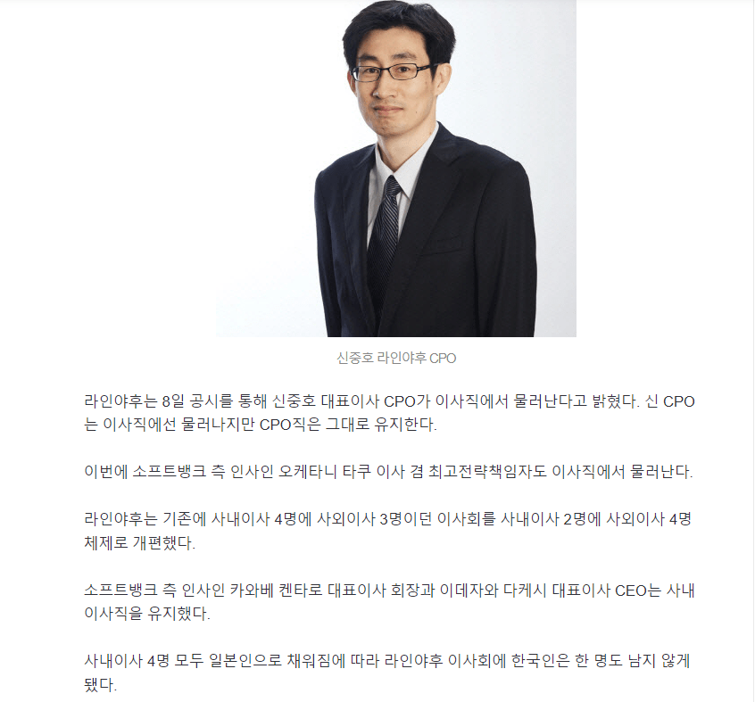 [속보]라인 야후_사내이사 4명 모두 일본인으로 채워짐