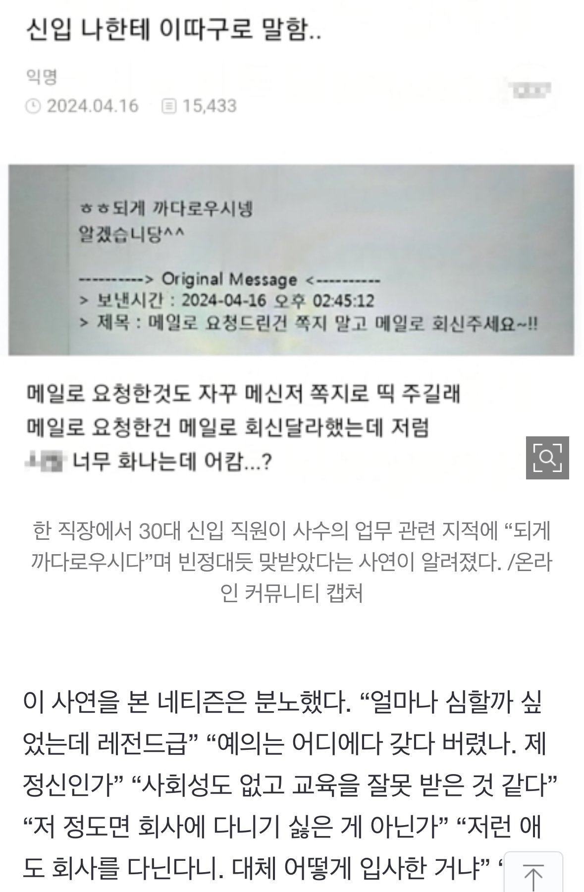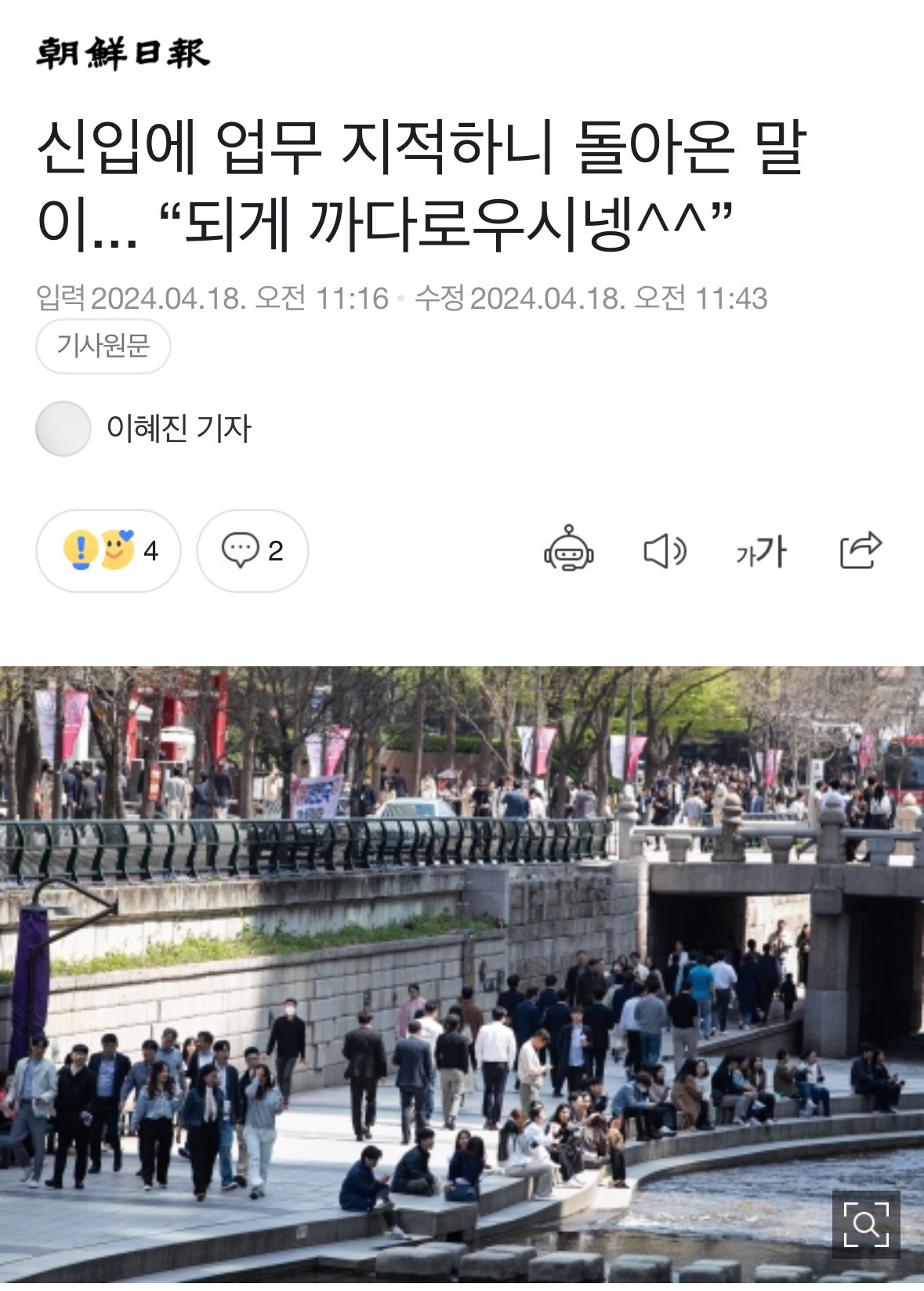 [조선] 신입에 업무 지적하니 돌아온 말이... “되게 까다로우시넹^^”