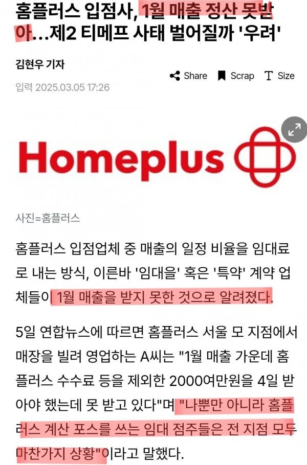 홈플러스 입점사 1월 매출 정산 못 받아, 나만 그런 것 아닌