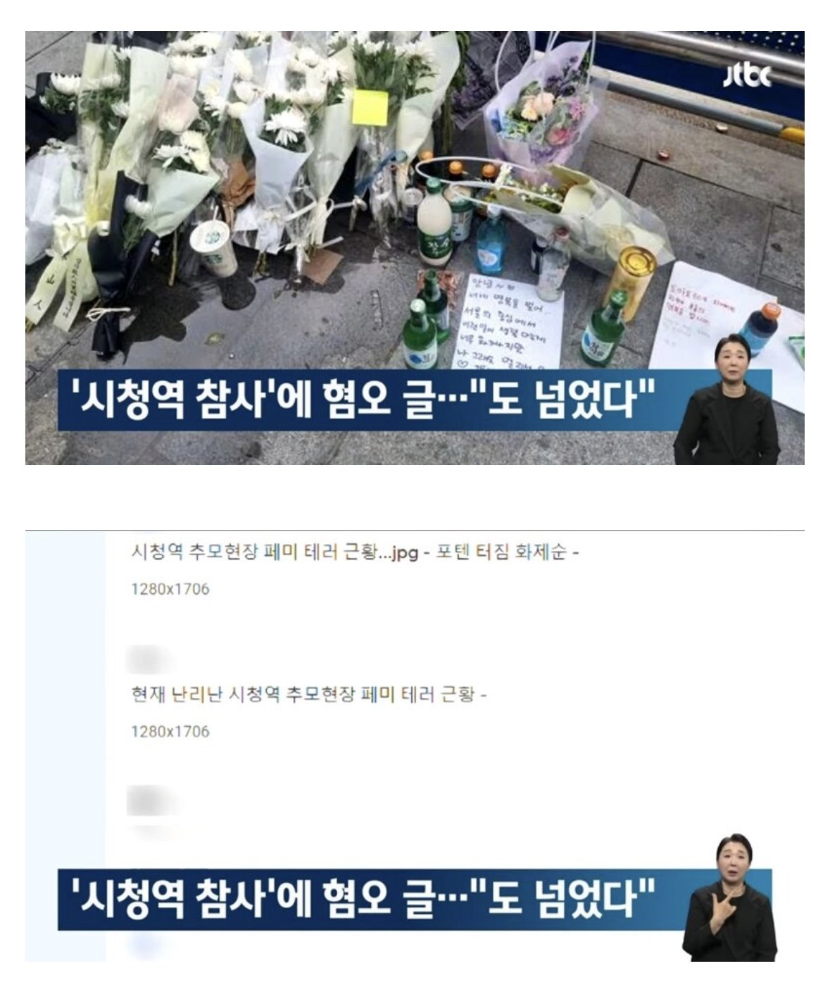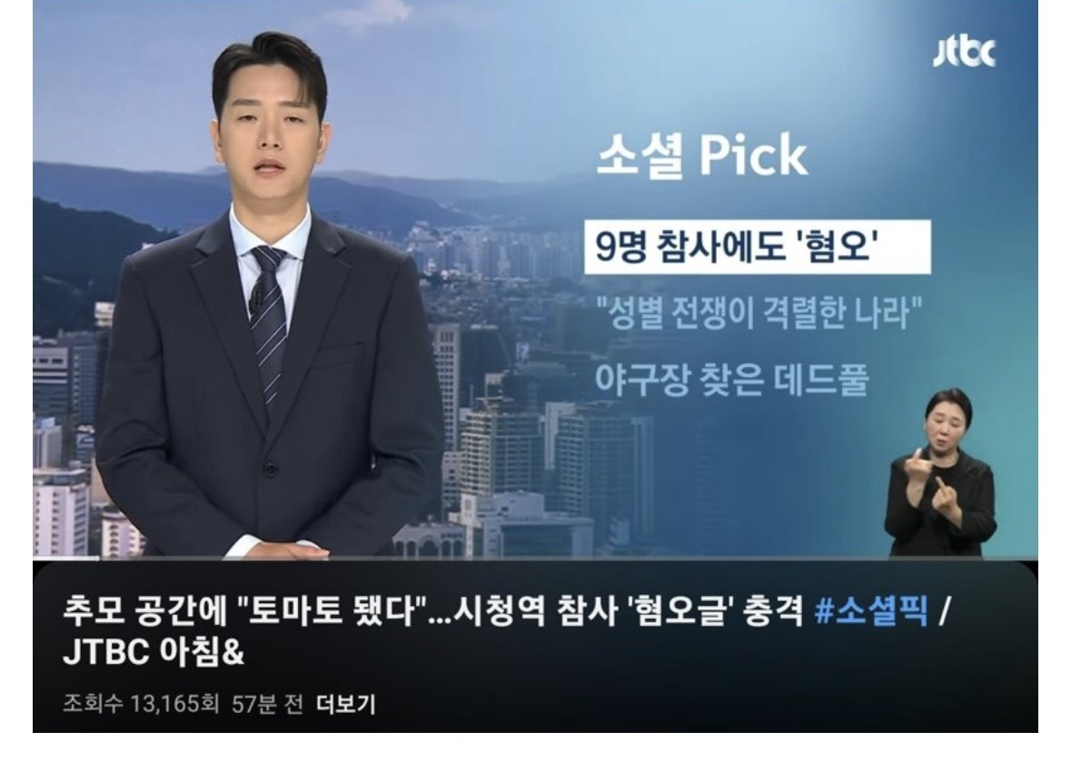 JTBC 아침뉴스에 시청역 참사현장 혐오글 관련으로 뉴스 떴네 ㄷㄷㄷㄷㄷㄷ