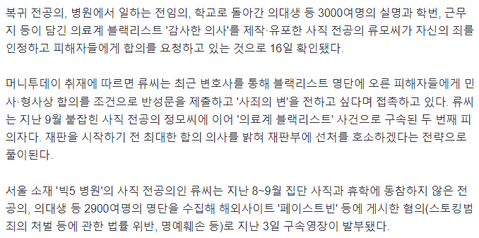[단독]응급실 의사 조롱…블랙리스트 작성자, 잡히자마자 피해자에 합의 요청