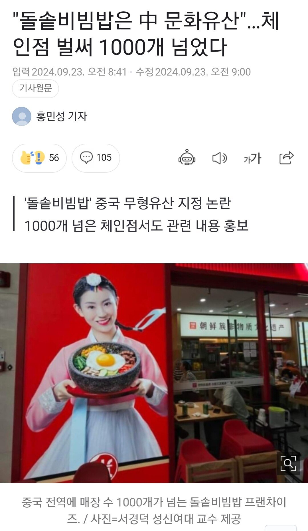 "돌솥비빔밥은 中 문화유산"…체인점 벌써 1000개 넘었다
