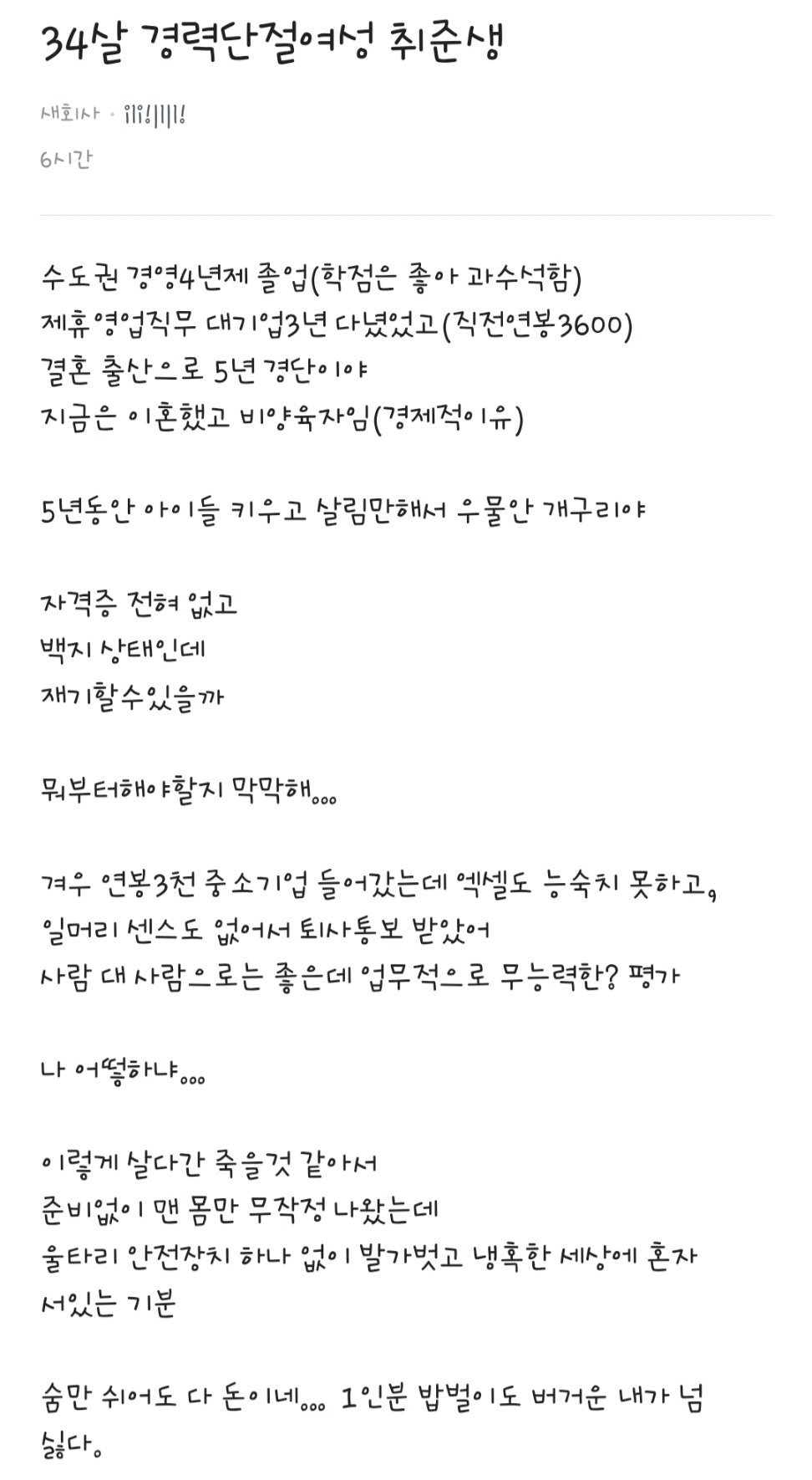 경력 단절 34살 이혼녀의 현실 .jpg