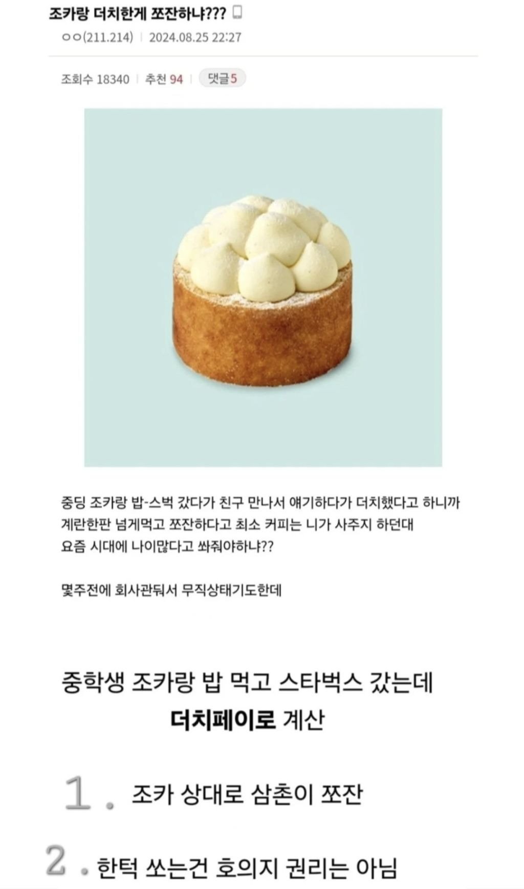 중학생 조카랑 더치페이한게 쪼잔한거냐?