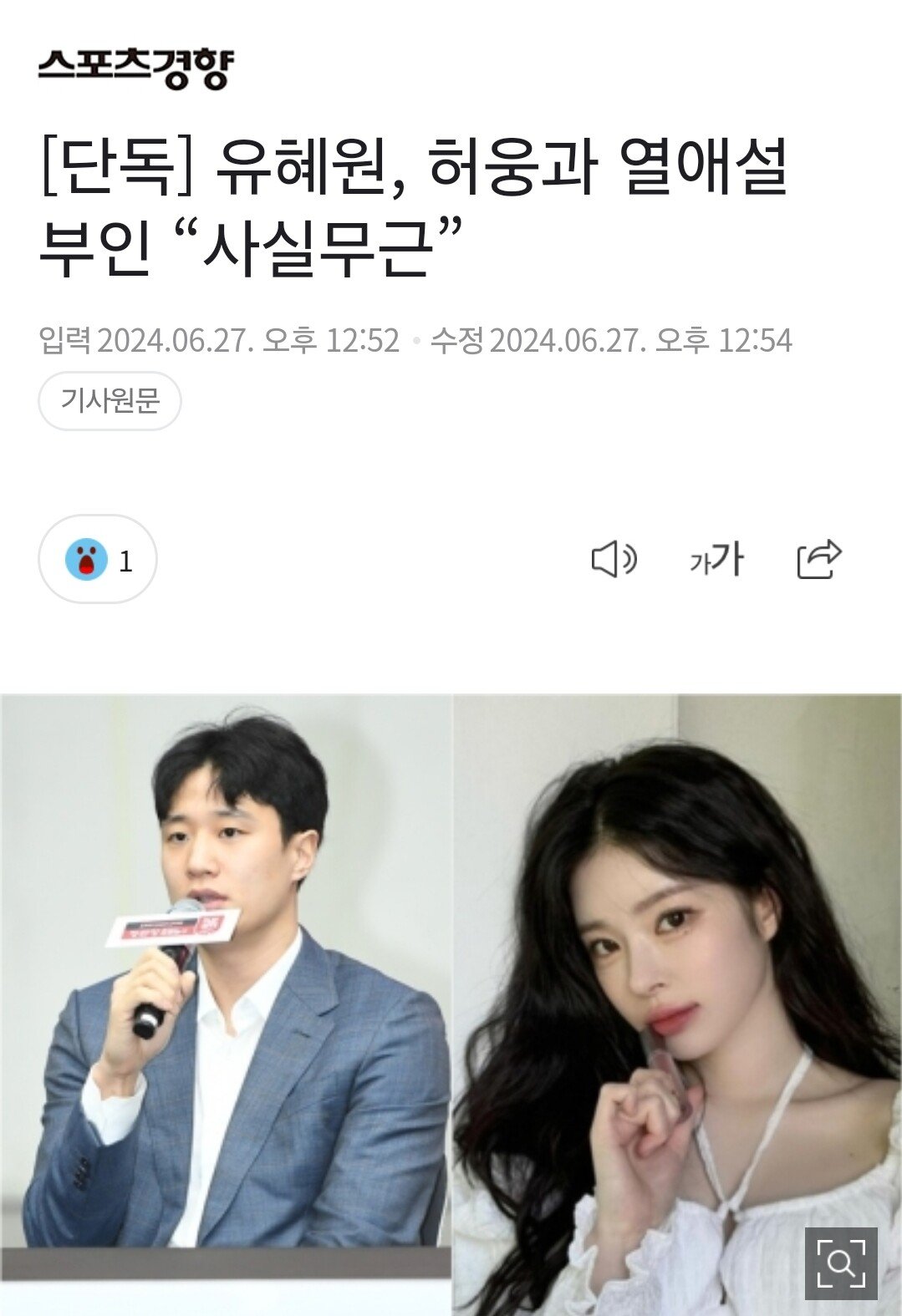 앞서 한 매체에서는 연예계 복수 관계자 말을 빌려 유혜원과 허웅이 올 초 처음 만나 연인으로 발전한 것으로 알려졌다고 보도한 바 있다.