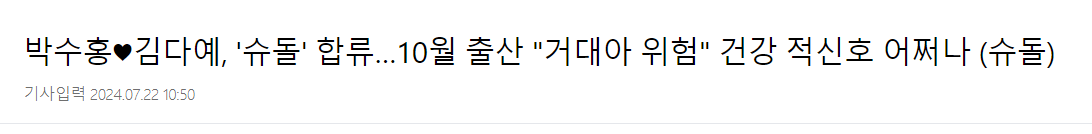 박수홍은 지난 2021년 23살의 나이차를 극복하고 김다예와 결혼했다. 이들은 시험관 시술을 통해 임신에 성공, 오는 10월 출산을 앞두고 있다. 결혼 3년 만에 부모가 되어 많은 이들의 축하를 받았다.