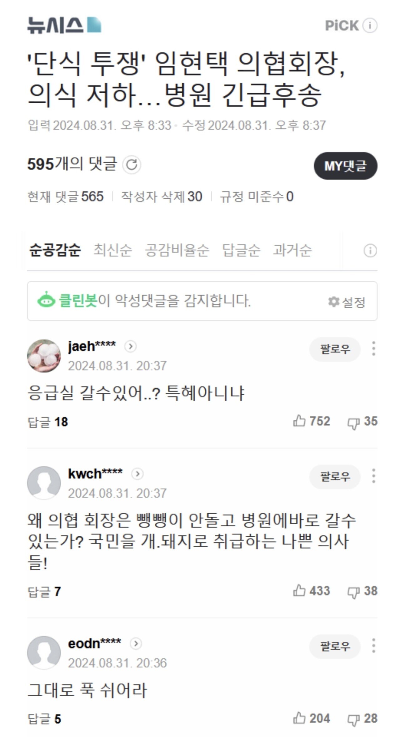 욕설이나 비방 목적의 댓글은