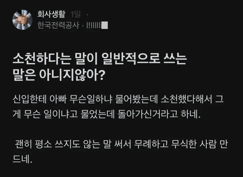 신입이 괜히 어려운말 써서 무식한 사람 되었다는 블라인