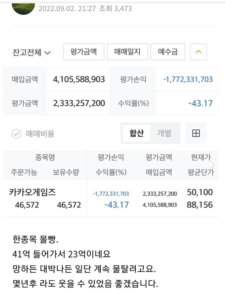 2년 전 카카오게임즈 41억 몰빵한 투자자