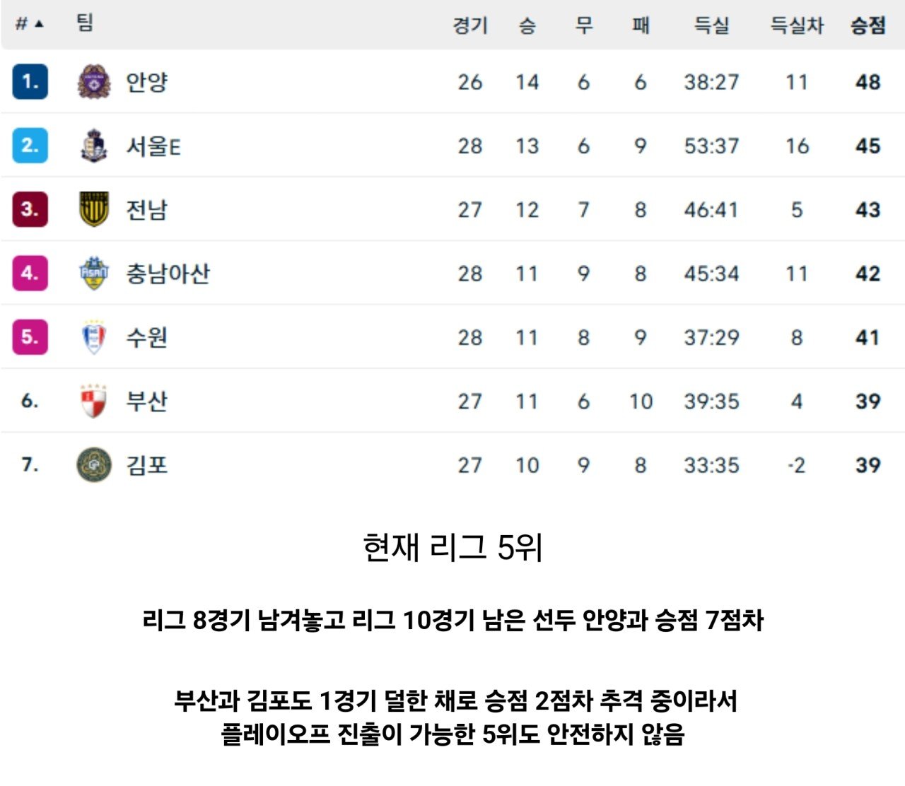 2부리그로 강등당한 수원삼성블루윙즈 근황