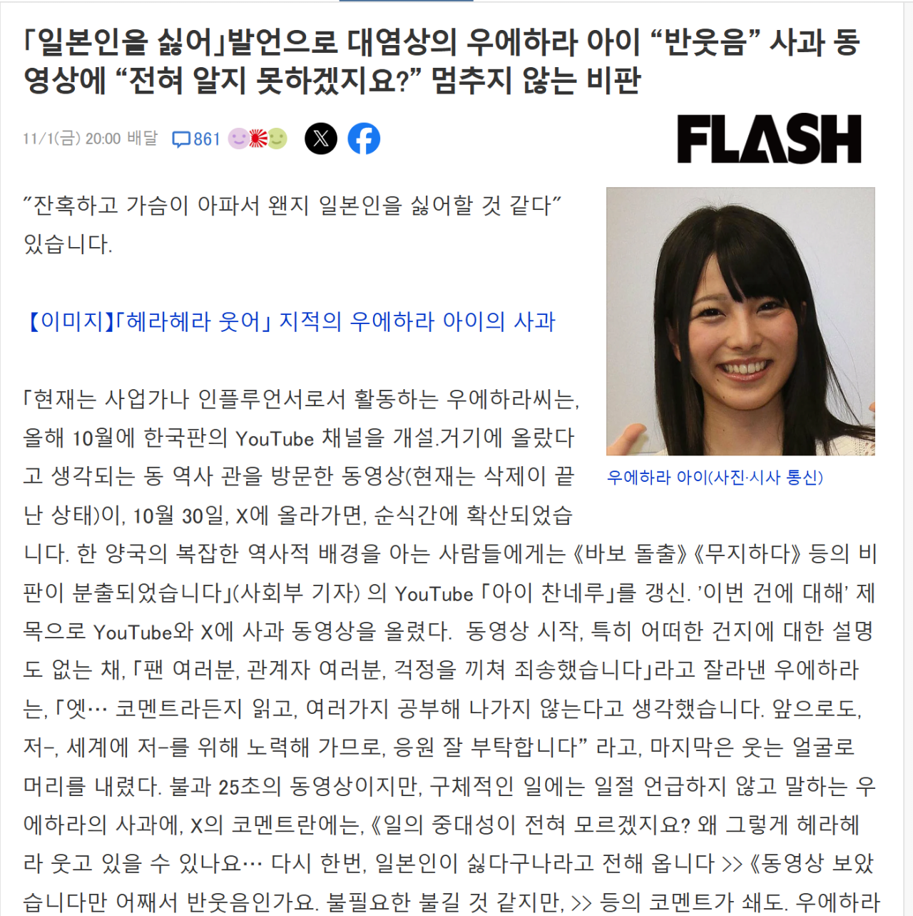 서대문 형무소 가서 일본인이 싫어지는거 같다란 소감 영상 올렸다가 일본에서 악플 폭격 받는중 ㅜㅜ