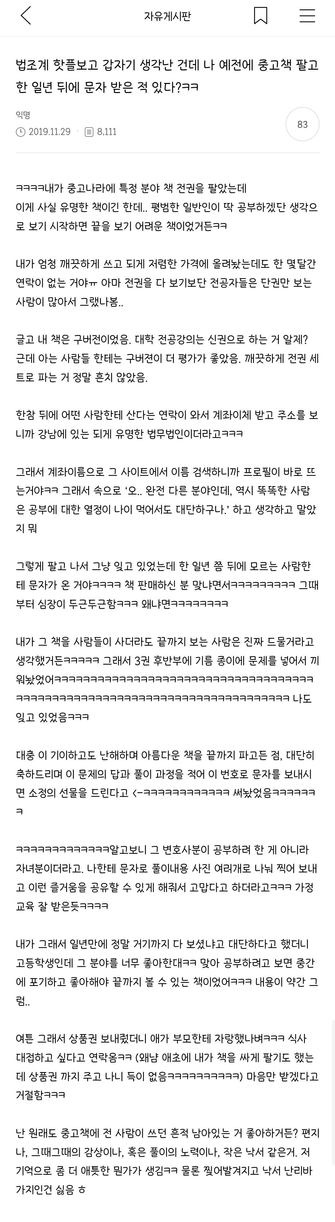 중고책을 팔고 일년 뒤에 구매자로 부터 전화를 받은 썰