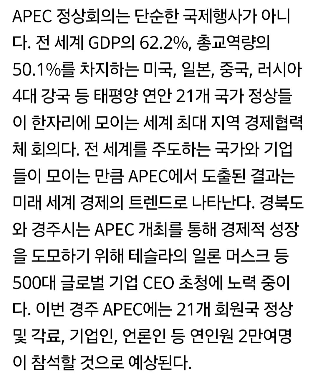 경상북도 "APEC에 젠슨황, 일론 머스크 초청 노력 중이다"