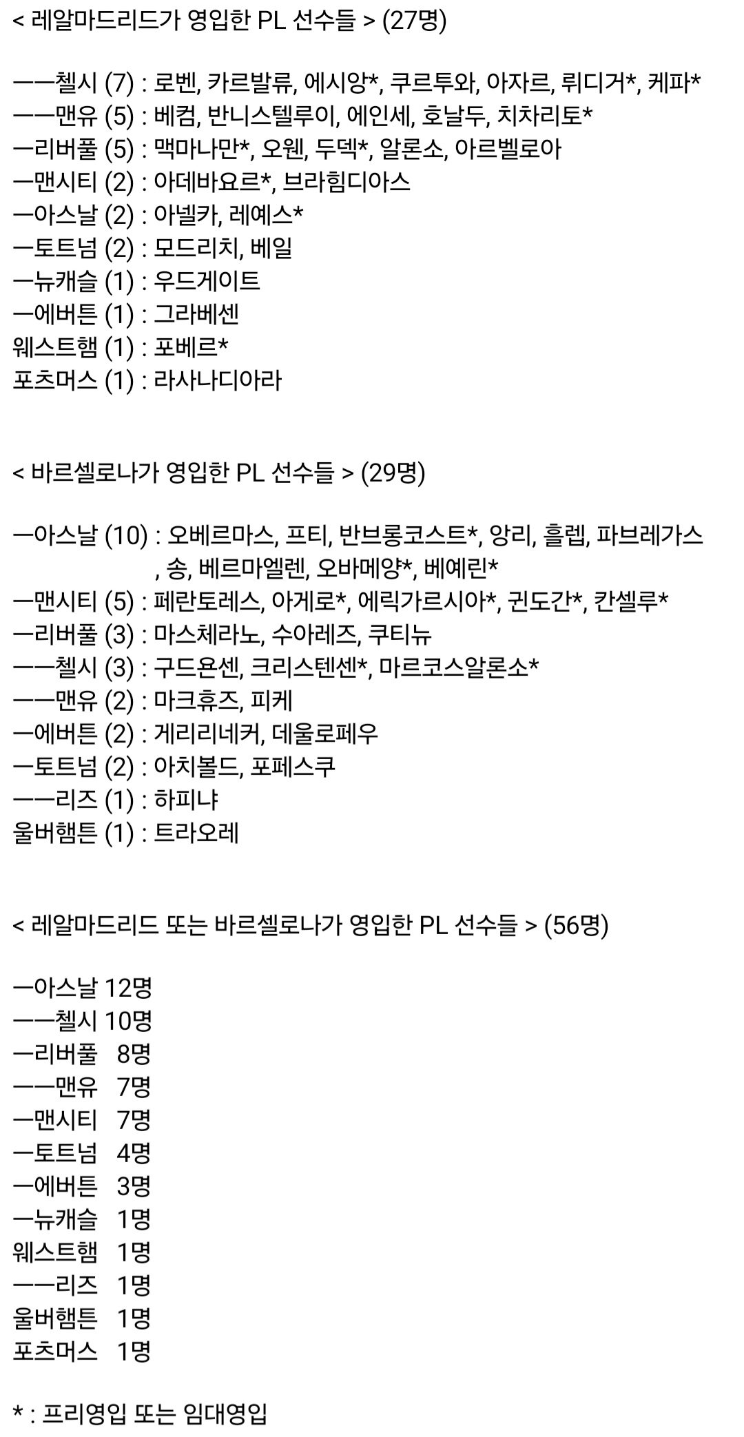 [pic] 레알, 바르샤가 영입한 PL 선수들 명단 ㄷㄷ
