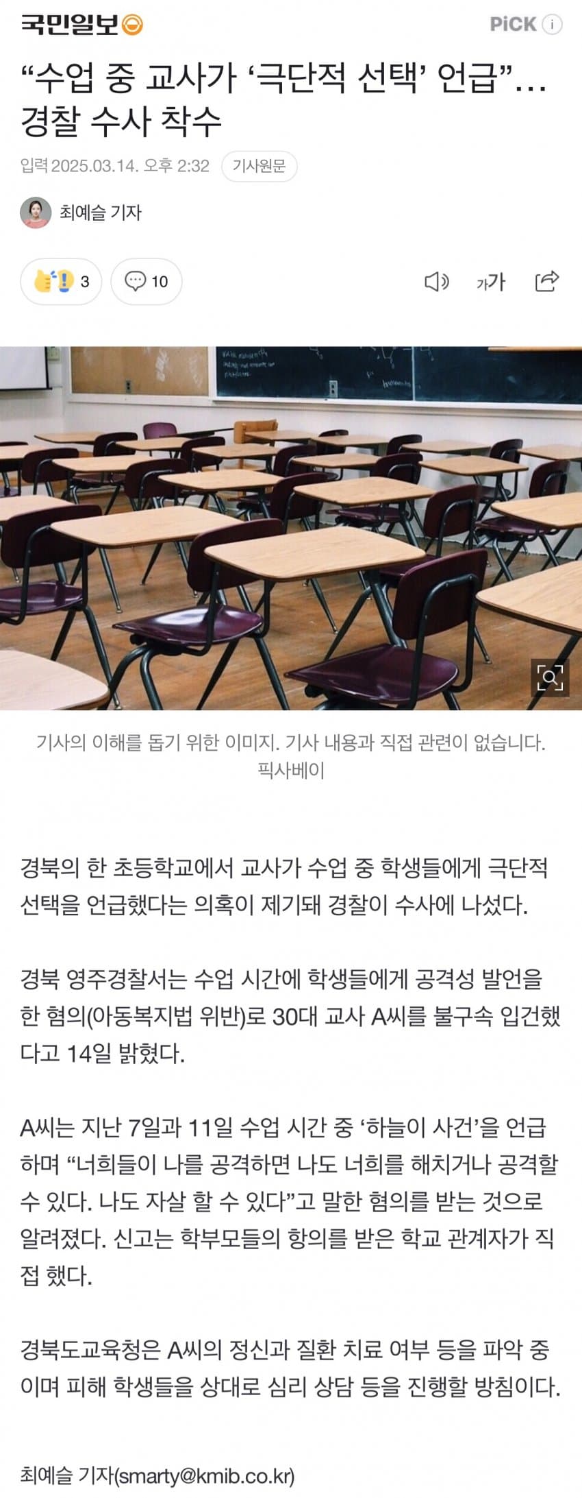 “수업 중 교사가 ‘극단적 선택’ 언급”… 경찰 수사 착수