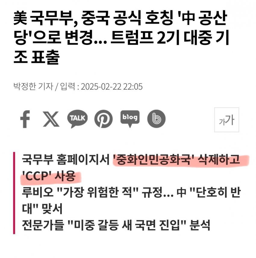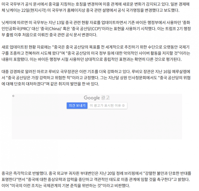 미 국무부, 중국 공식 호칭 '공산당'으로 변경