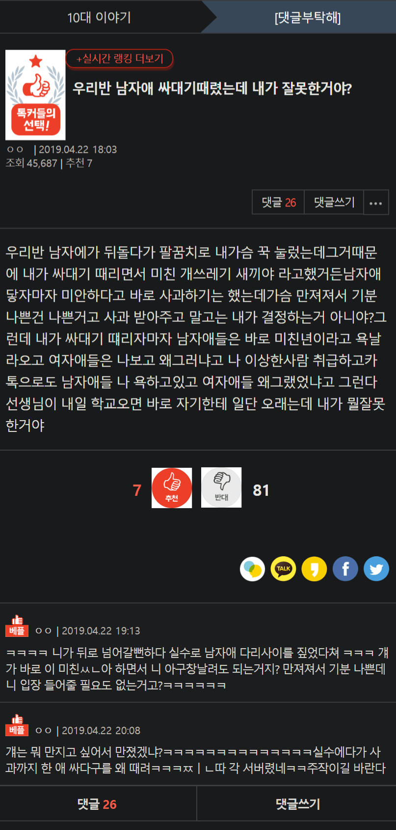 우리반 남자애 싸대기 때렸는데 내가 잘못한거야?....jpg