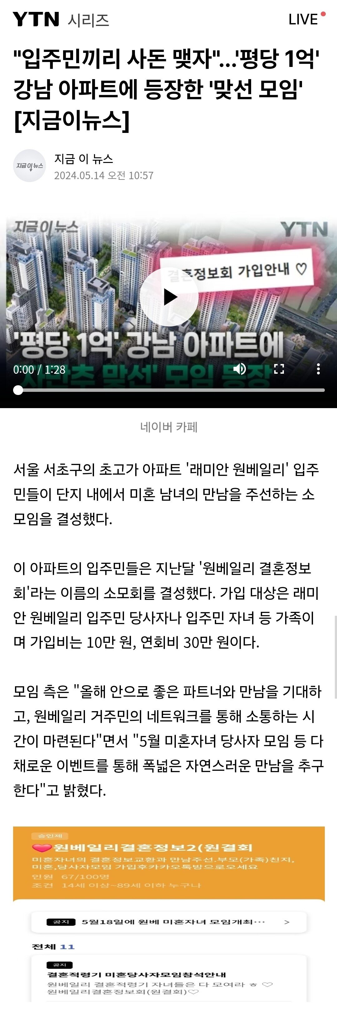 "입주민끼리 사돈 맺자"...'평당 1억' 강남 아파트에 등장한 '맞선 모임'
