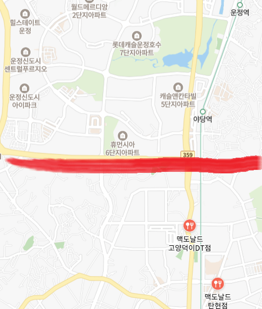 저기 빨간선위로 파주 아래로 일산임.