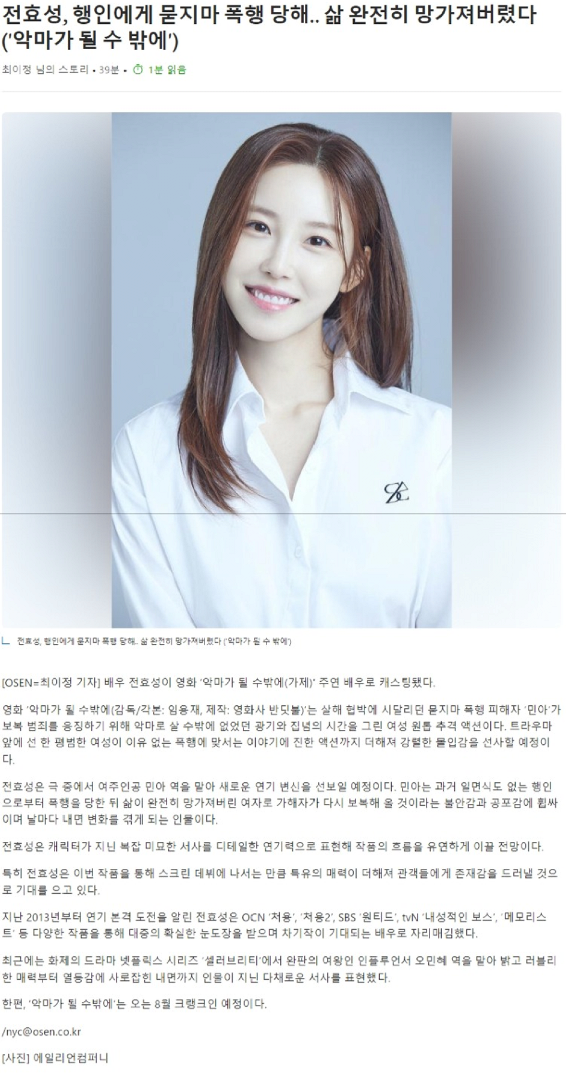 전효성, 행인에게 묻지마 폭행 당해.. 삶 완전히 망가져버렸다 ('악마가 될 수 밖에')