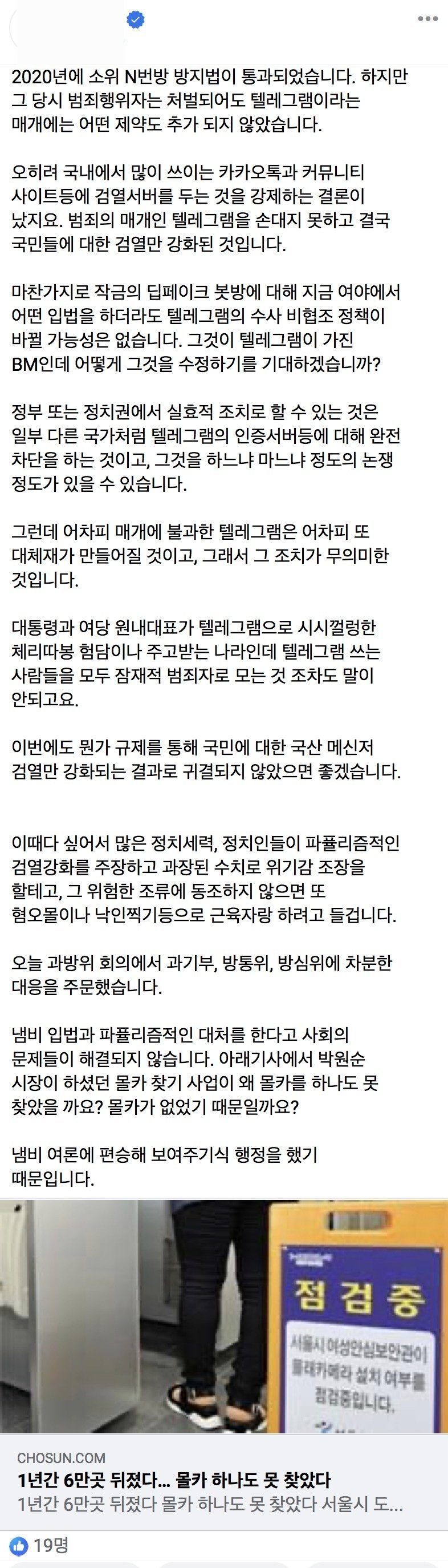 페미들도 반박 불가능하다는 텔레그램 사태 일침.facebook