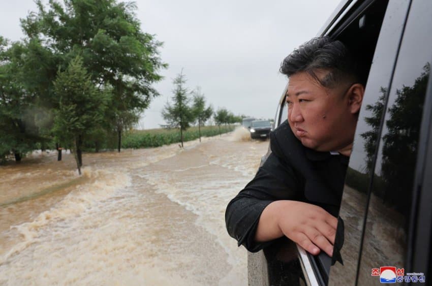 오늘자 북한 압록강 홍수 시찰간 김정은