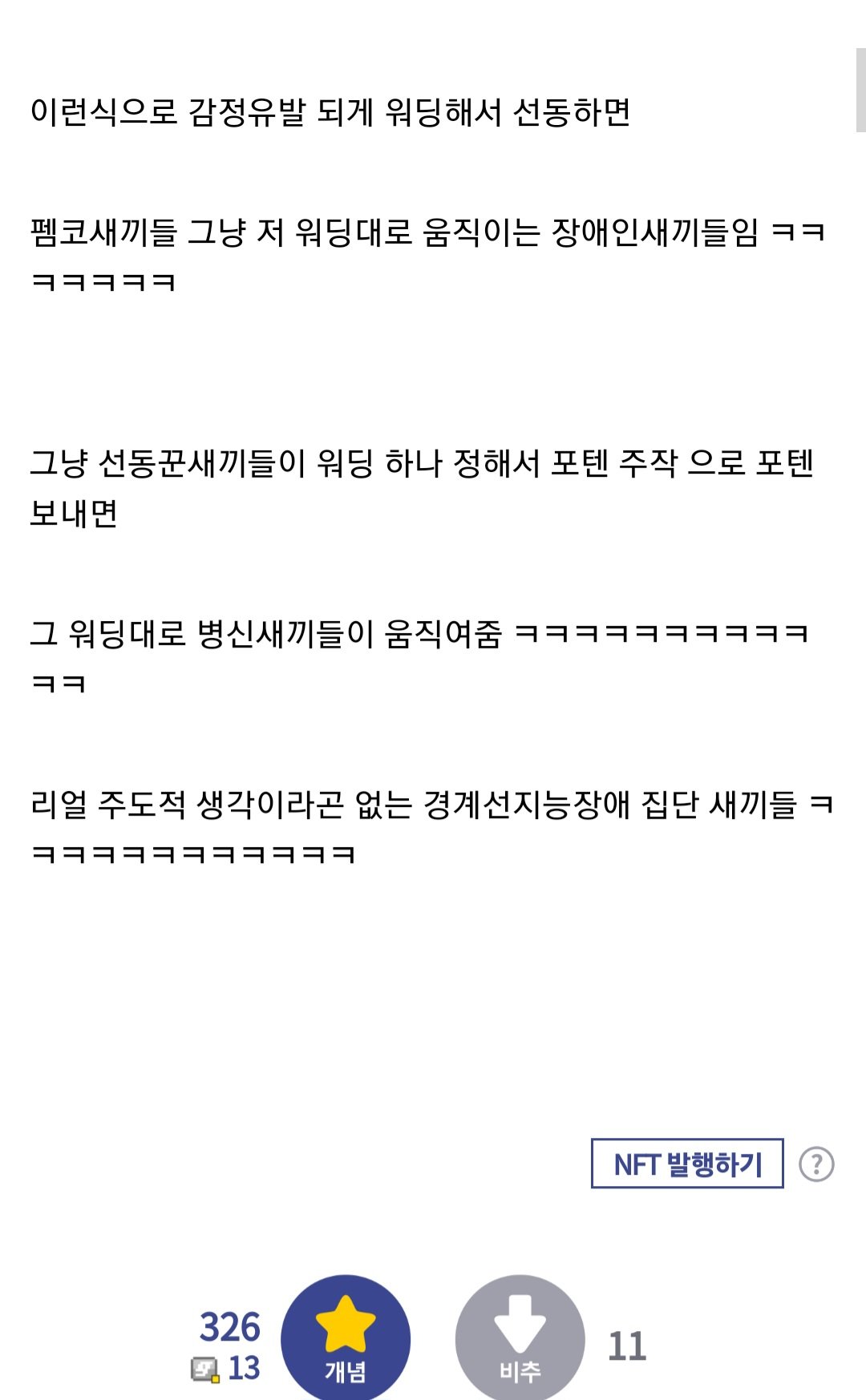 디시) 펨코새끼들은 워딩만 약간 다르게 해줘도 선동 당하는 새끼들임
