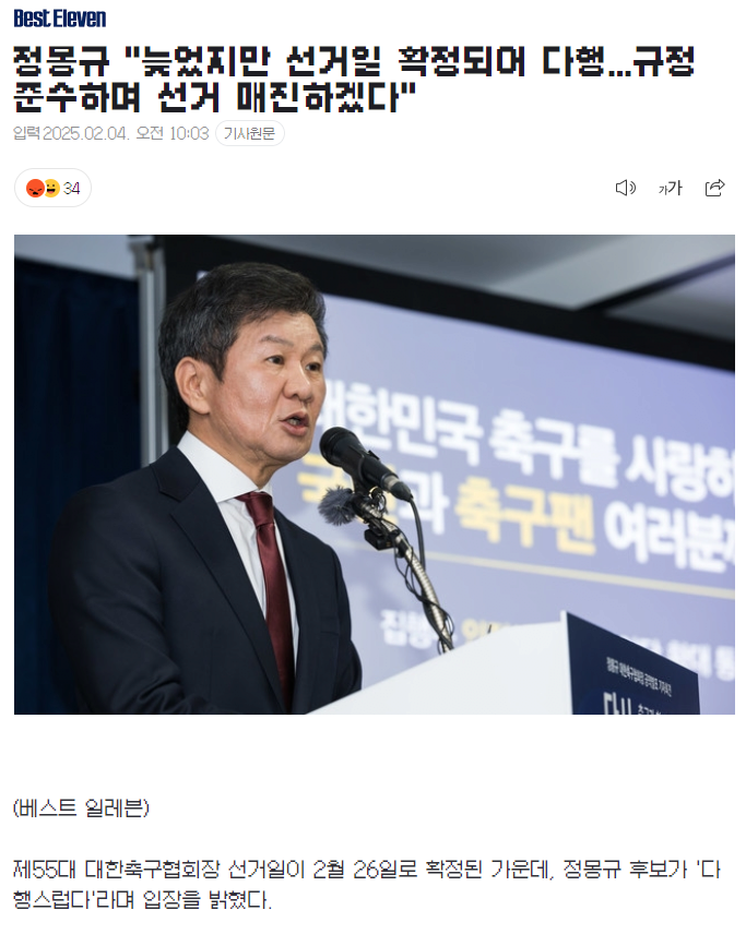 ㅈ몽규 "늦었지만 선거일 확정되어 다행... 규정 준수하며 선거 매진하겠다"