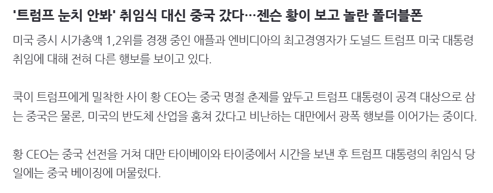 '트럼프 눈치 안봐' 취임식 대신 중국 갔다…젠슨 황이 보고 놀란 폴더블폰
