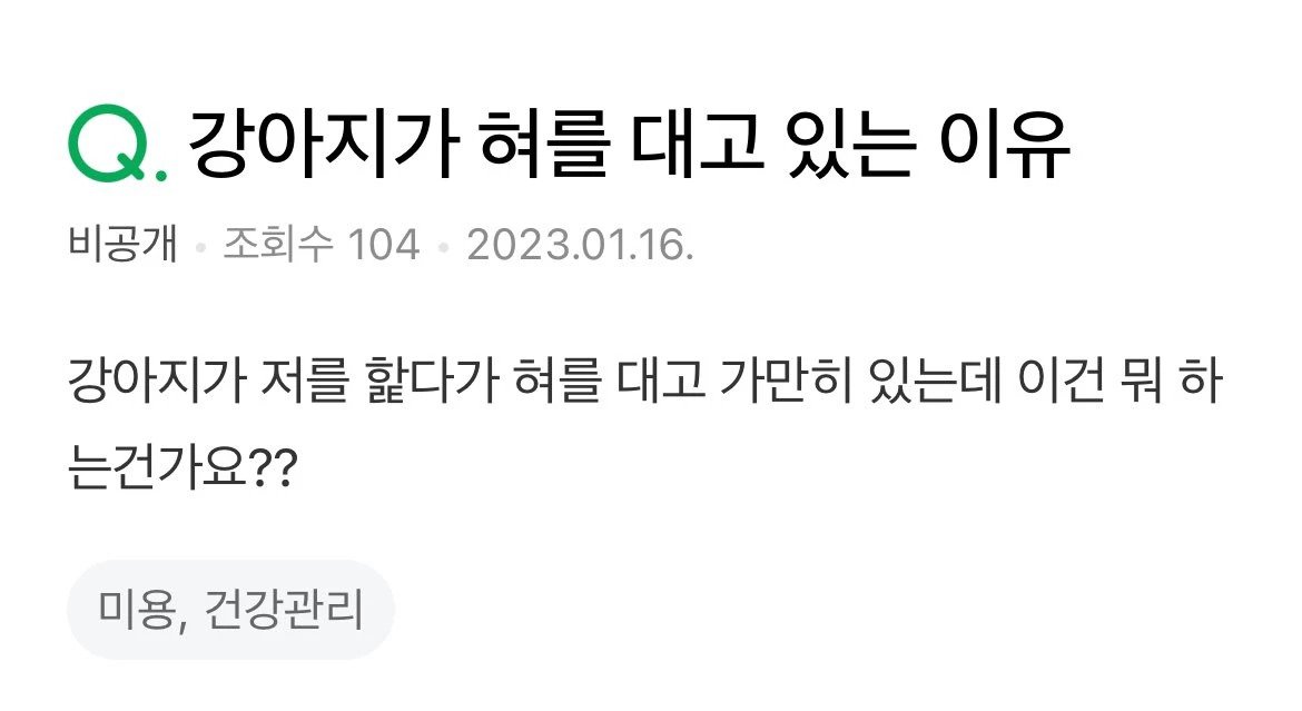 강아지가 핥다가 혀를 대기만 하고 있는 이유