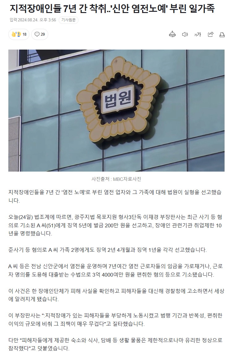7년동안 신안 염전 일가족이 지적장애인을 무임금으로 착취함