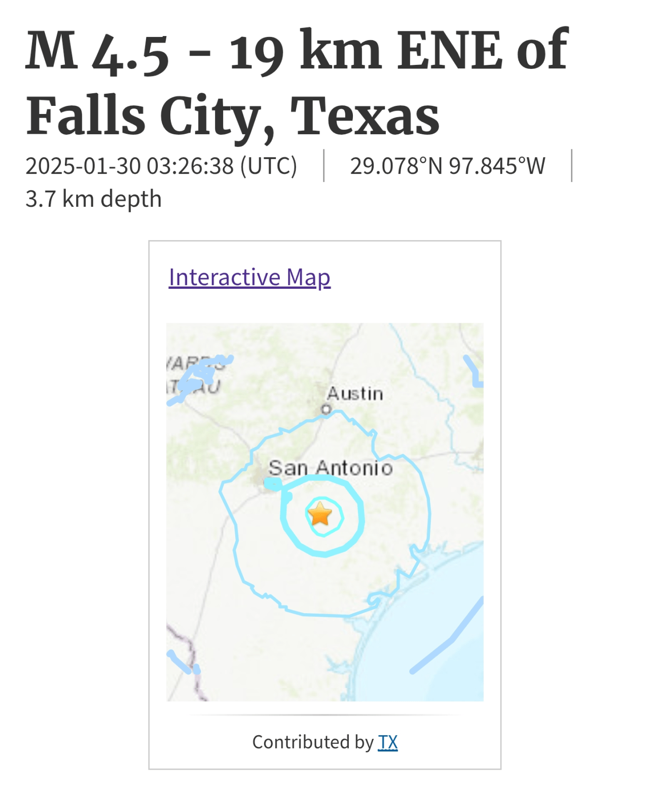 [지진 소식] 미국 텍사스 샌 안토니오 규모 4.5 지진 발생