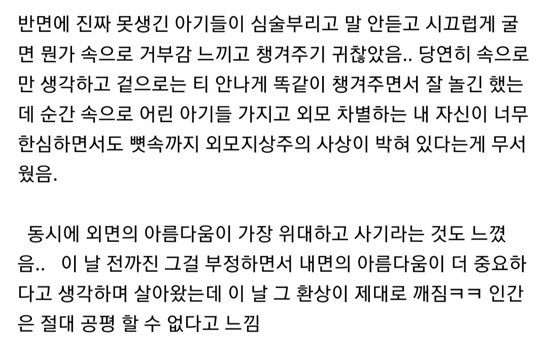 외모가 세상 사는데 제일 중요하고 위대하긴 하지..