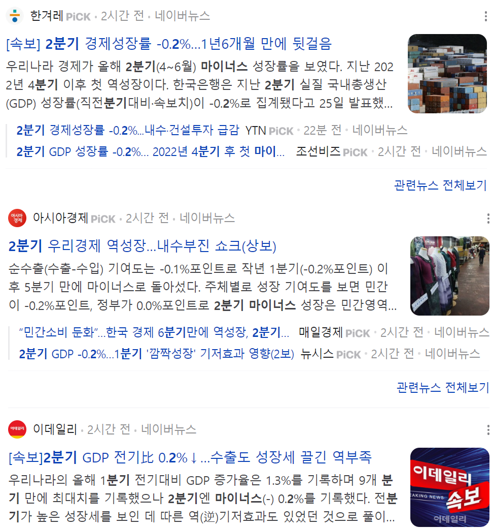 한국 2분기 경제성장률 -0.2% 내수부진 쇼크