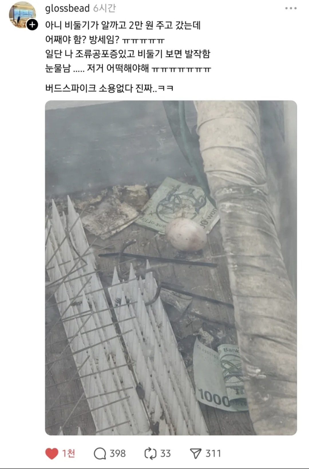 비둘기가 방세 주고감ㅠㅠㅠㅠㅠ