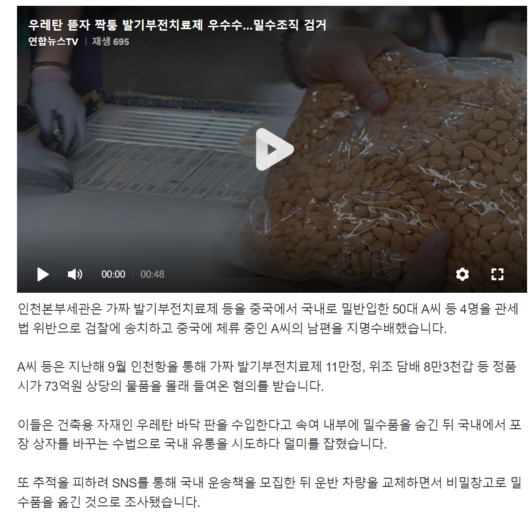 우레탄 뜯자 짝퉁 발기부전치료제 우수수…밀수조직 검거