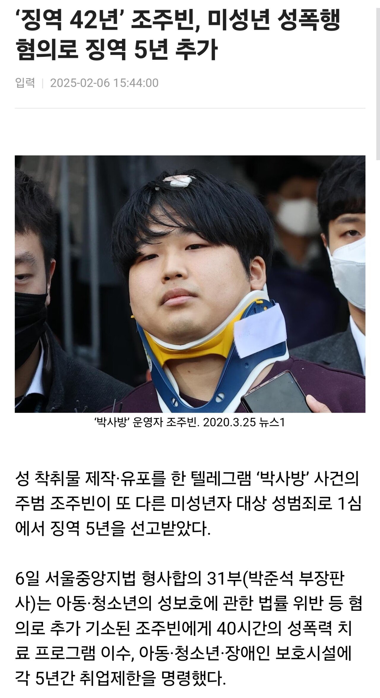 ‘징역 42년’ 조주빈, 미성년 성폭행 혐의로 징역 5년 추가
