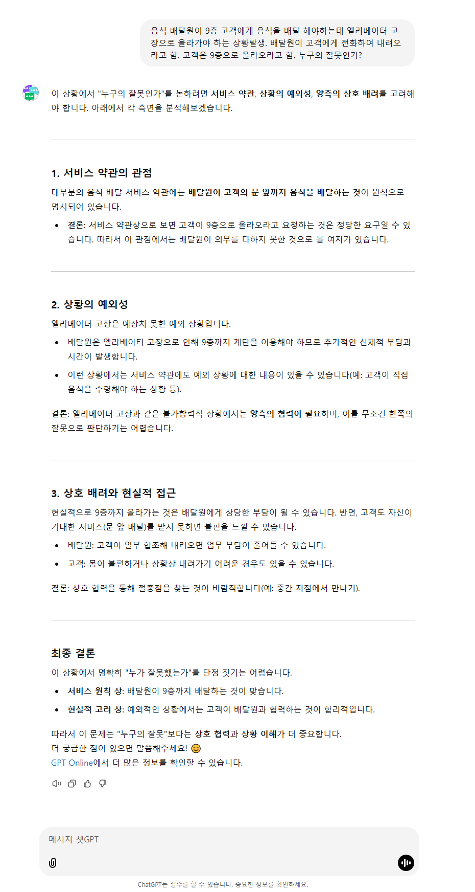 배달원 vs 고객 챗GPT 너의 생각은?