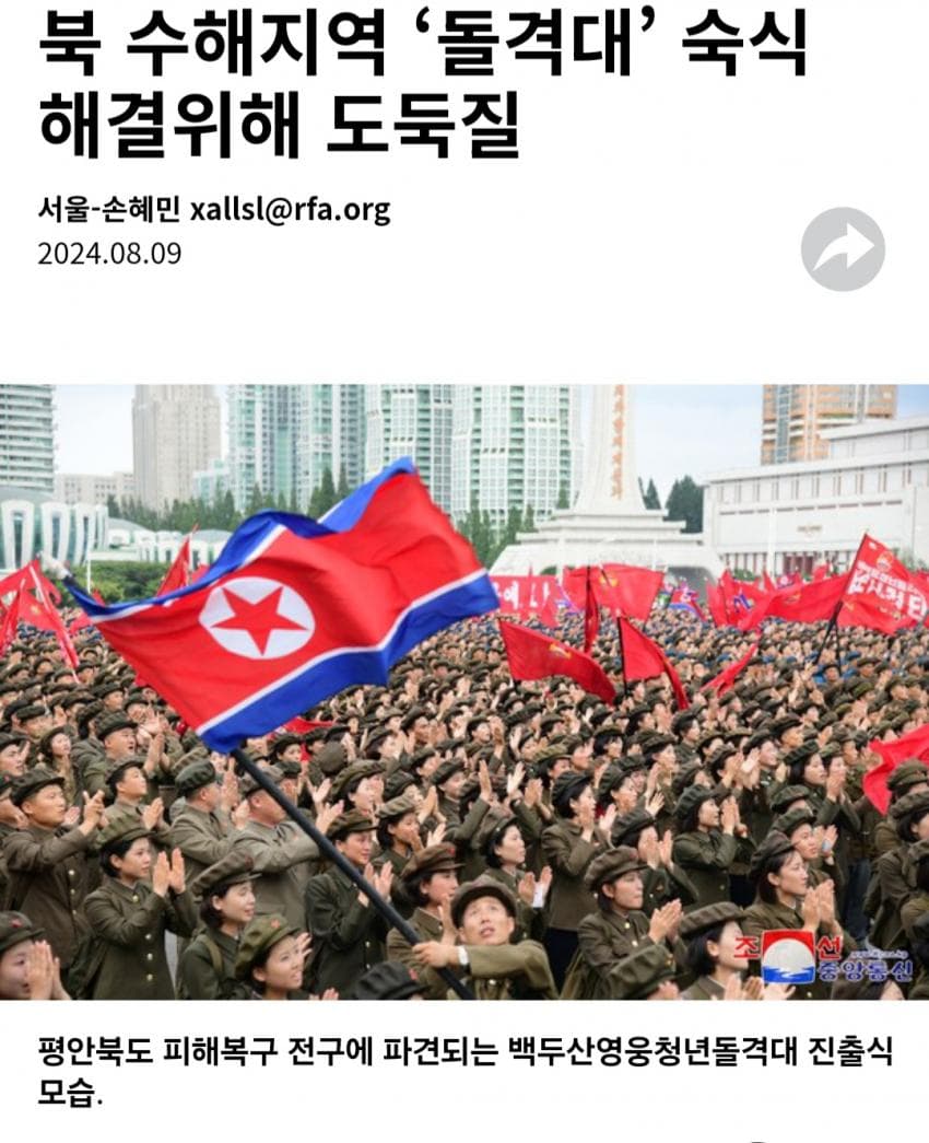 지금 홍수로 난리난 신의주 돕겠다고 청년 30만 보냈는데
