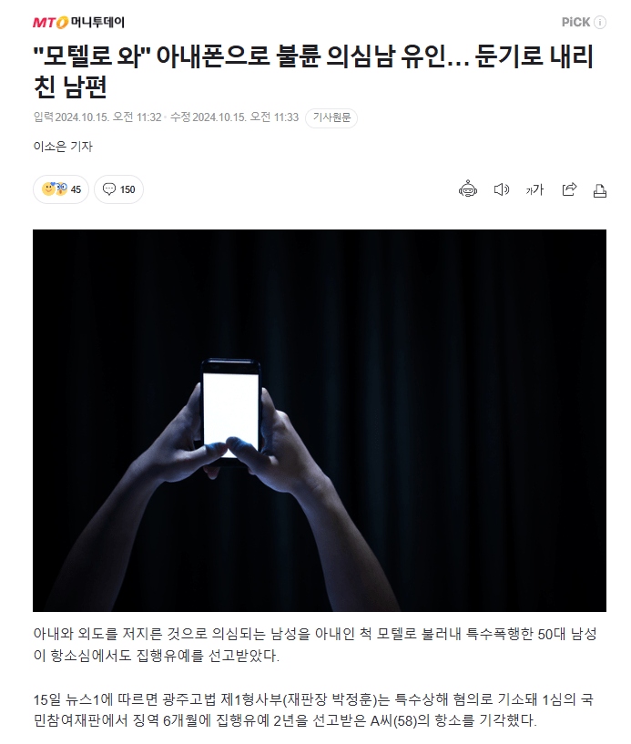 "모텔로 와" 아내폰으로 불륜 의심남 유인... 둔기로 내리친 남편